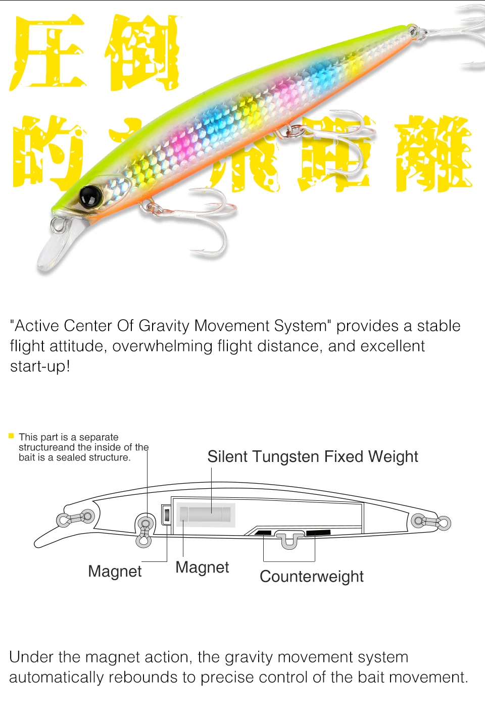 • Bajo la acción del imán, el centro de gravedad rebota automáticamente para controlar con precisión el movimiento en el agua.