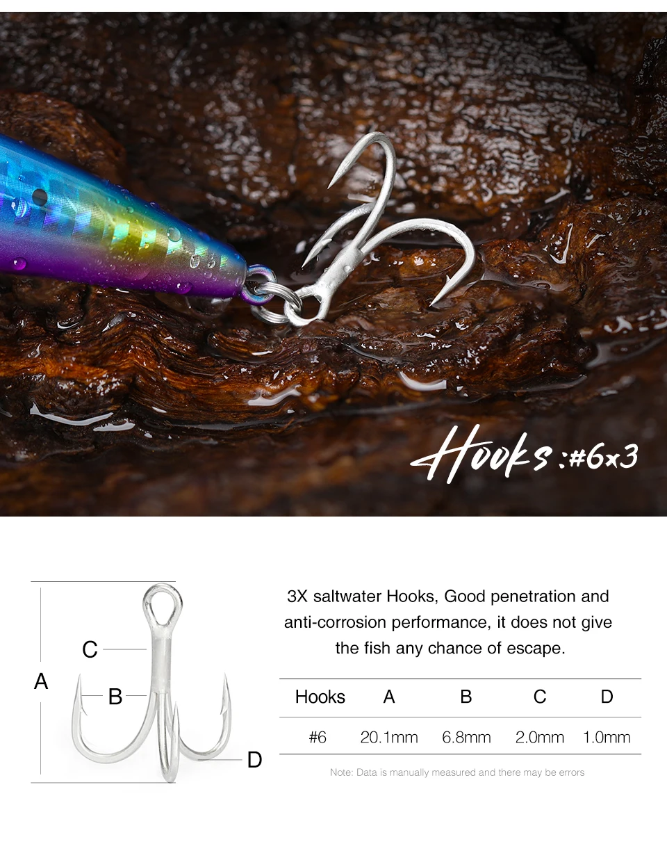 3 ganchos de agua salada. Con buena penetración y rendimiento anticorrosión, no le da al pez ninguna posibilidad de escape.