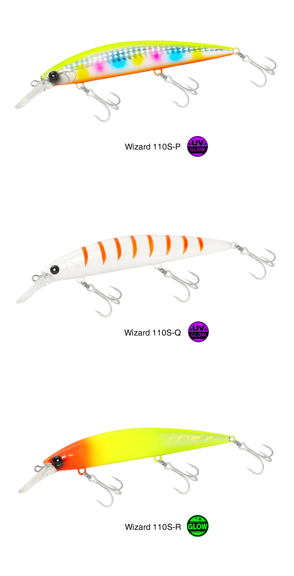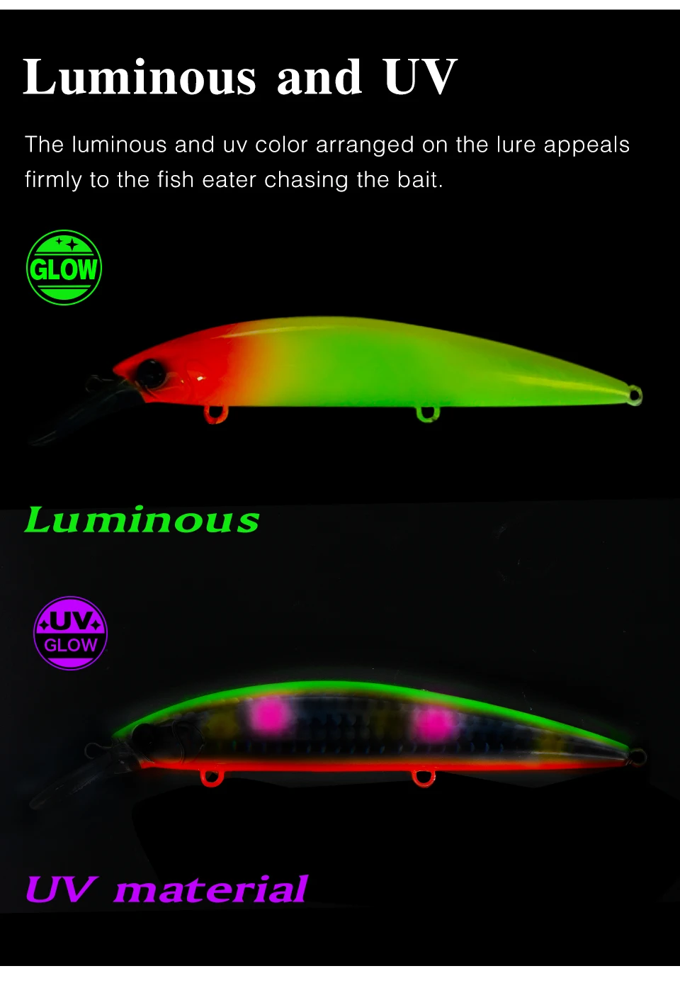 El color luminoso y UV atrae firmemente al consumidor de peces que persigue el cebo.