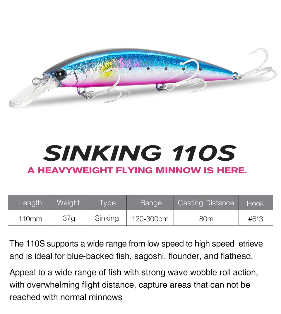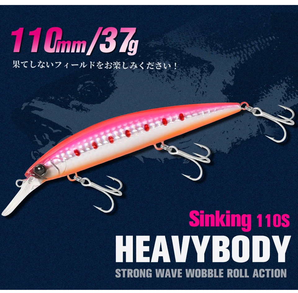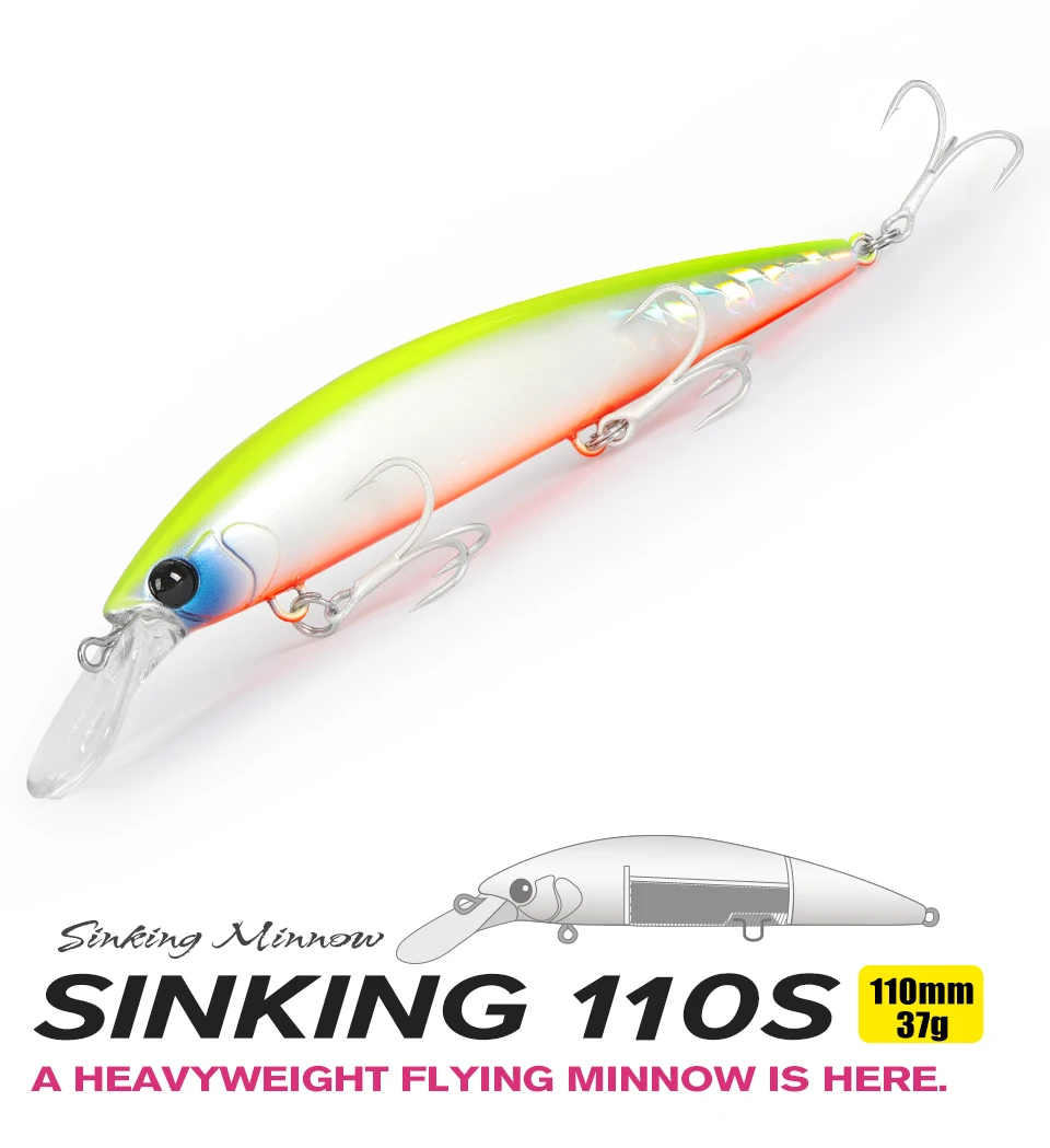TSURINOYA-SEÑUELOS DE Pesca de Mar, cebo duro Artificial de 110mm y 37g, para pececillo que se hunde, 110S