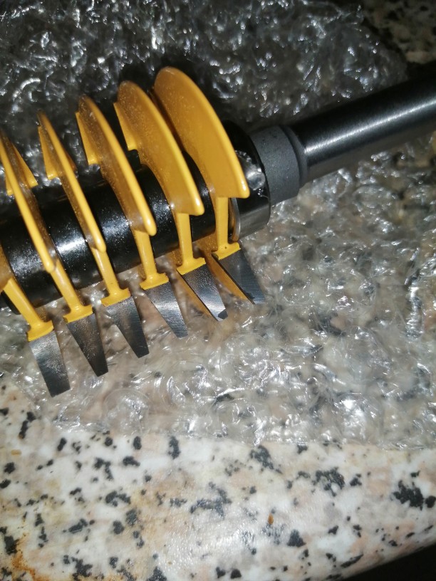 El vástago no está completamente equilibrado y vibra si utilizas todas las cuchillas. Una de las cuchillas es diferente, es más gruesa que el resto. en fin...