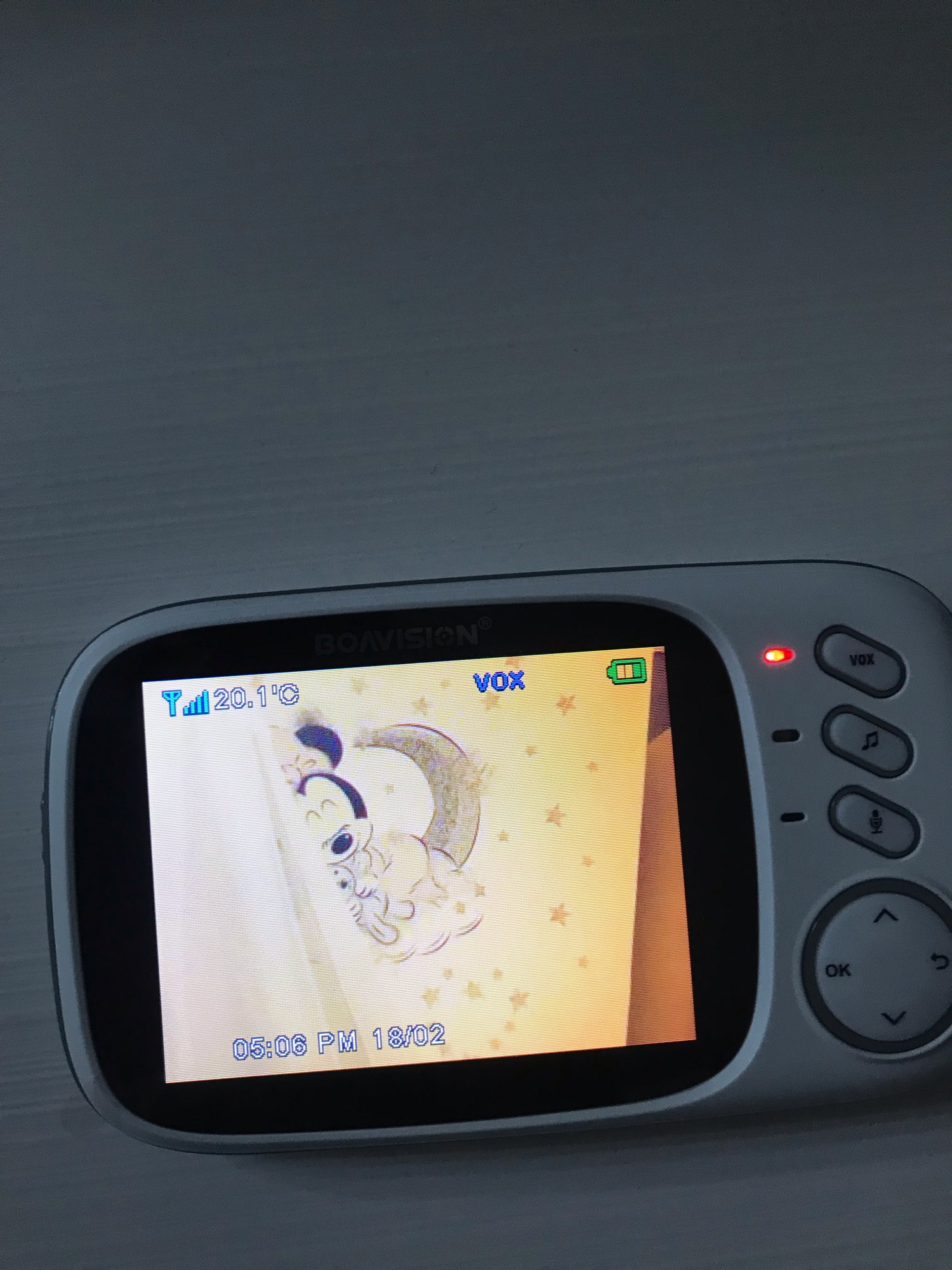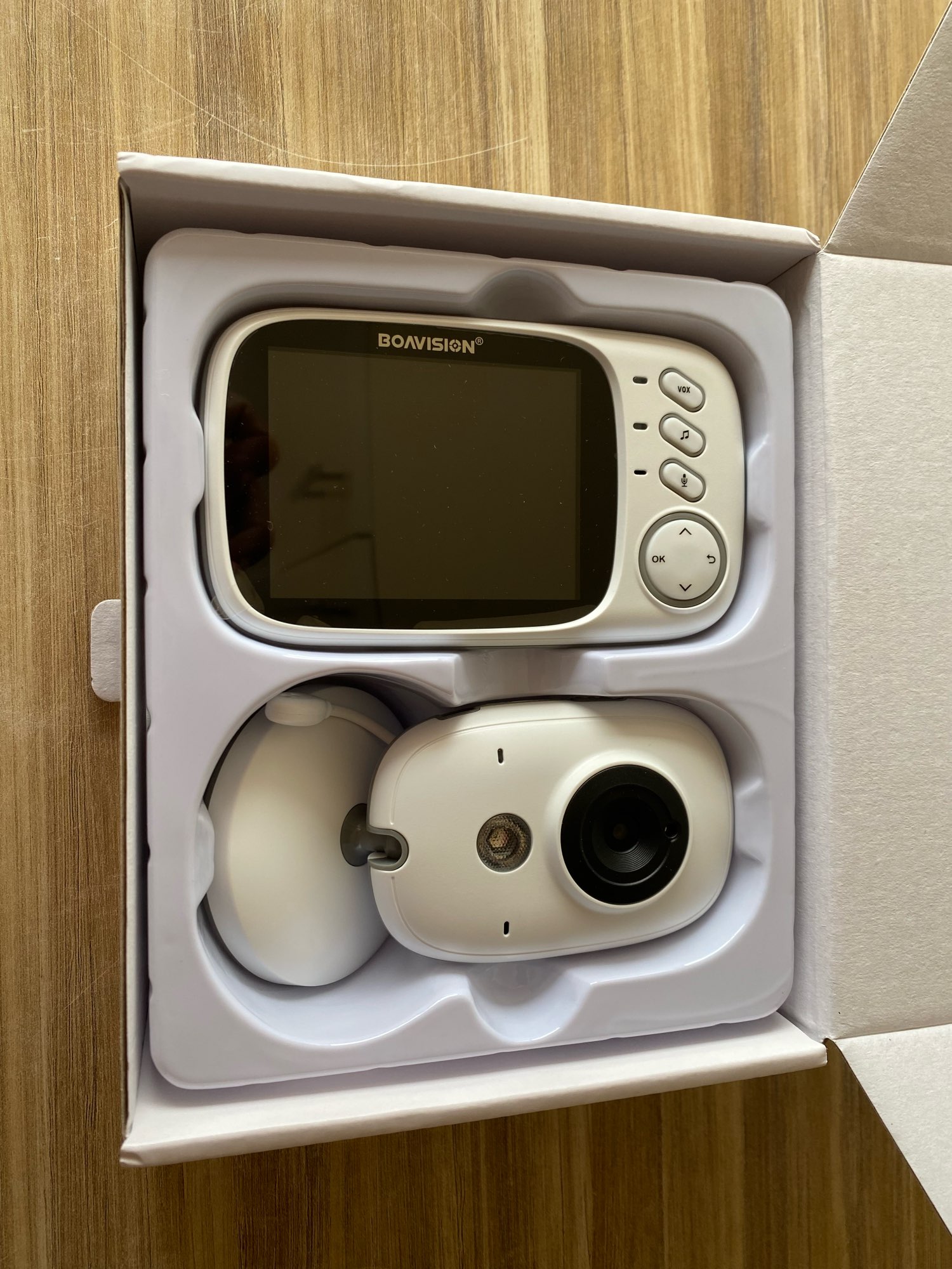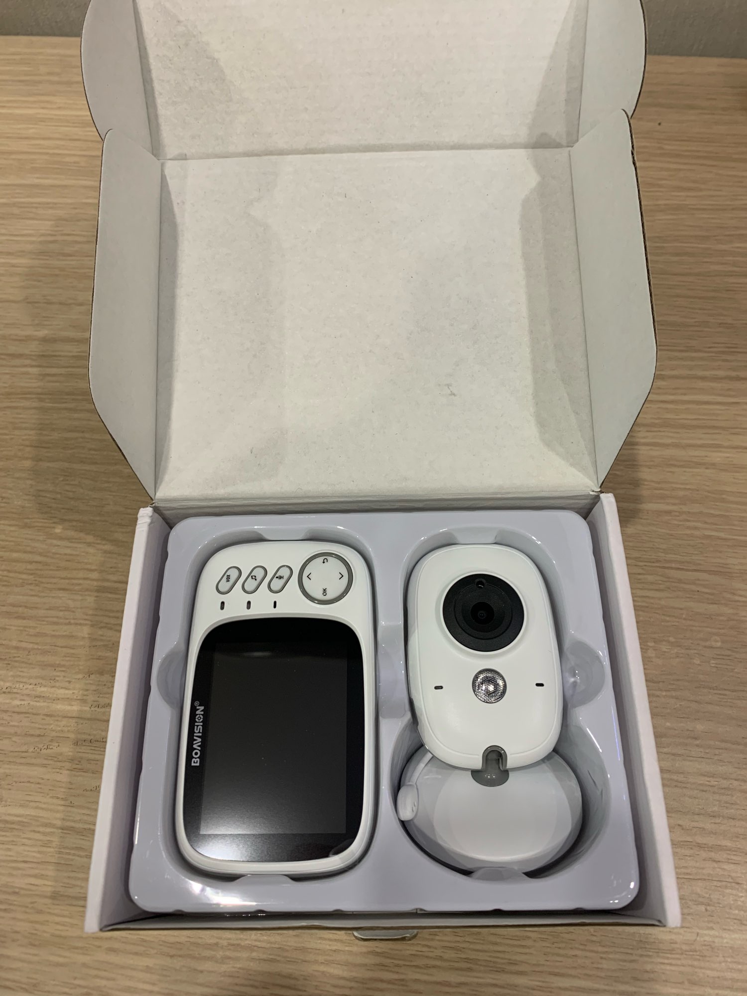 Delivered earlier than expected, I find that it fulfills its functions, no need to go and ruin you elsewhere for a baby camera. The sound image at the top nothing to say