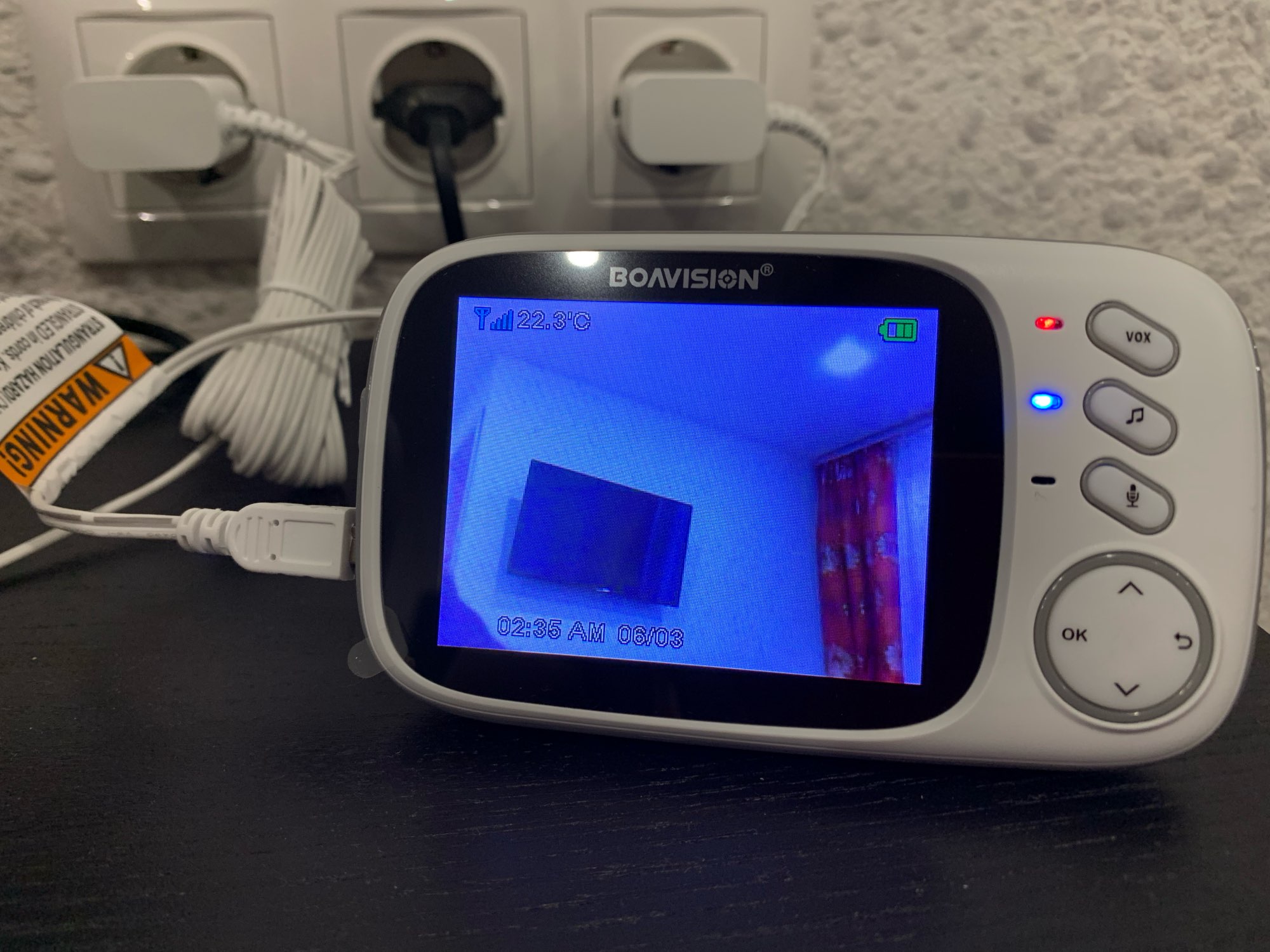 La guardería de video es excelente, funciona bien) no es inferior a la famosa marca Maman. La única cosa que no se ha comprobado es a qué distancia máxima captura la señal. No se comunicó directamente con el vendedor. Entrega a tiempo, recomiendo.