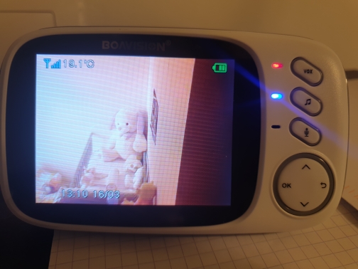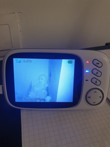 Very good product easy to set in French. Book with Chargers for the camera and for the screen good image quality. Temperature display in the room and possibility to broadcast Luckies remotely really a top purchase thank you!!!!